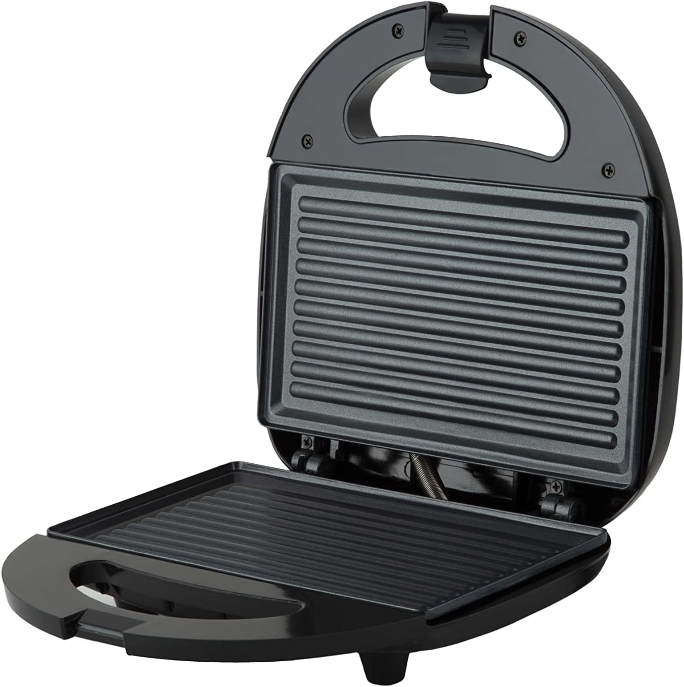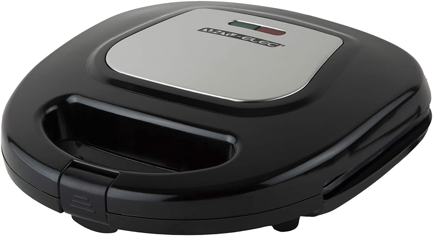 - Construction & Design: This compact sandwich maker grill, has stainless steel outer surface that adds to its durability and aesthetic appeal. It is equipped with a convenient cool-touch handle and locking system that reduces the chances of burnt fin