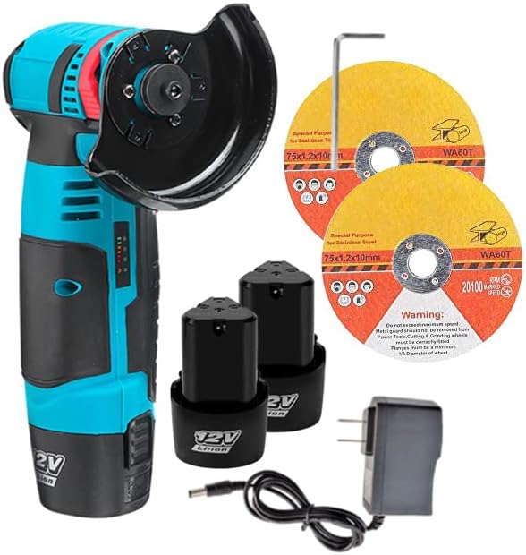 Powerful 12 V portable angle grinder with a handheld design comes with 2 standalone batteries, more convenient to use on-the-go