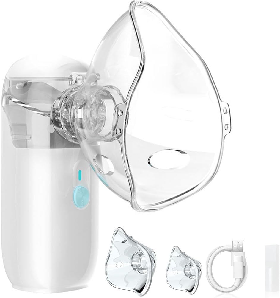 - 【Family Friendly】The device comes with two masks made of food-grade silicone (small for kids and large for adults) and a mouthpiece, depending on how you want or need to inhale. Having a nebulizer is much more affordable and hygienic than renting it from a pharmacy. [Please note] Please use a new 2.5V battery when using it. The voltage of the old battery is not as good as that of the old battery, which may cause the machine not to start normally.