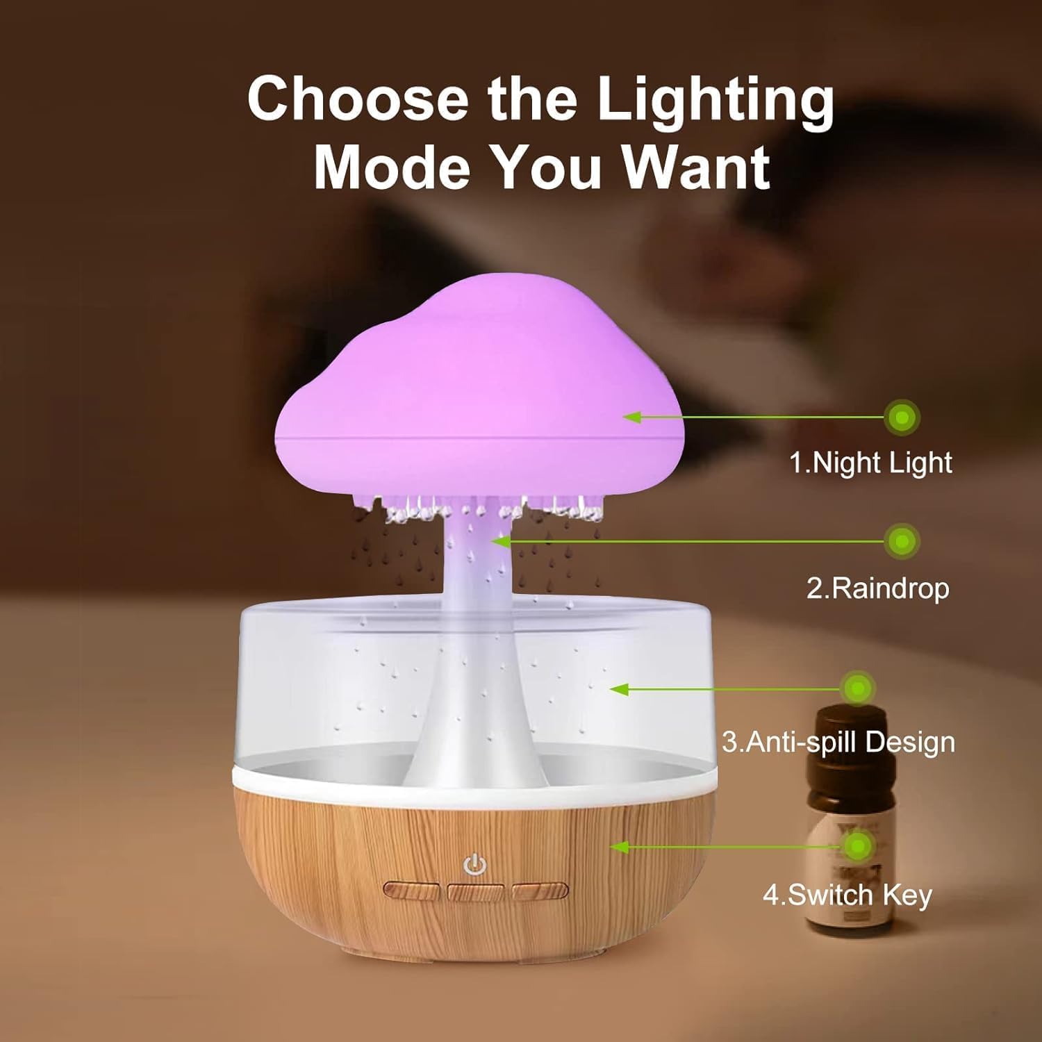 - [πππ ππππ πππππ] Add 2 drops of essential oil to the rain cloud diffuser humidifier, which makes it release the fragrance in the room. Create a relaxing and comfortable environment. Essential oil diffusion by flowing water and adding water can make the fragrance last more than 48 hours.