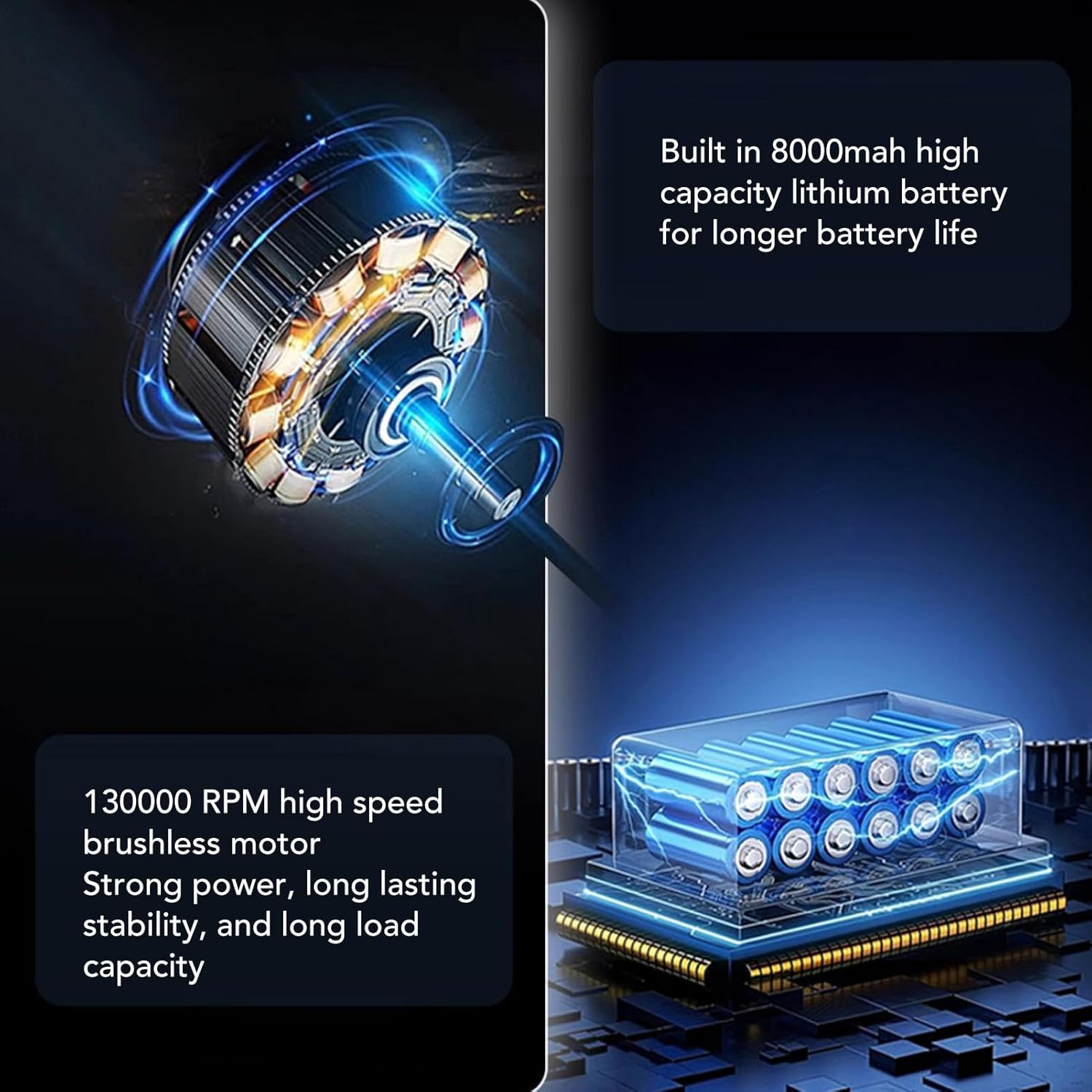- [Long Lasting Performance] Equipped with an 8000mah high capacity battery, the brushless motor design ensures reduced power consumption, extended lifespan, and minimal noise.