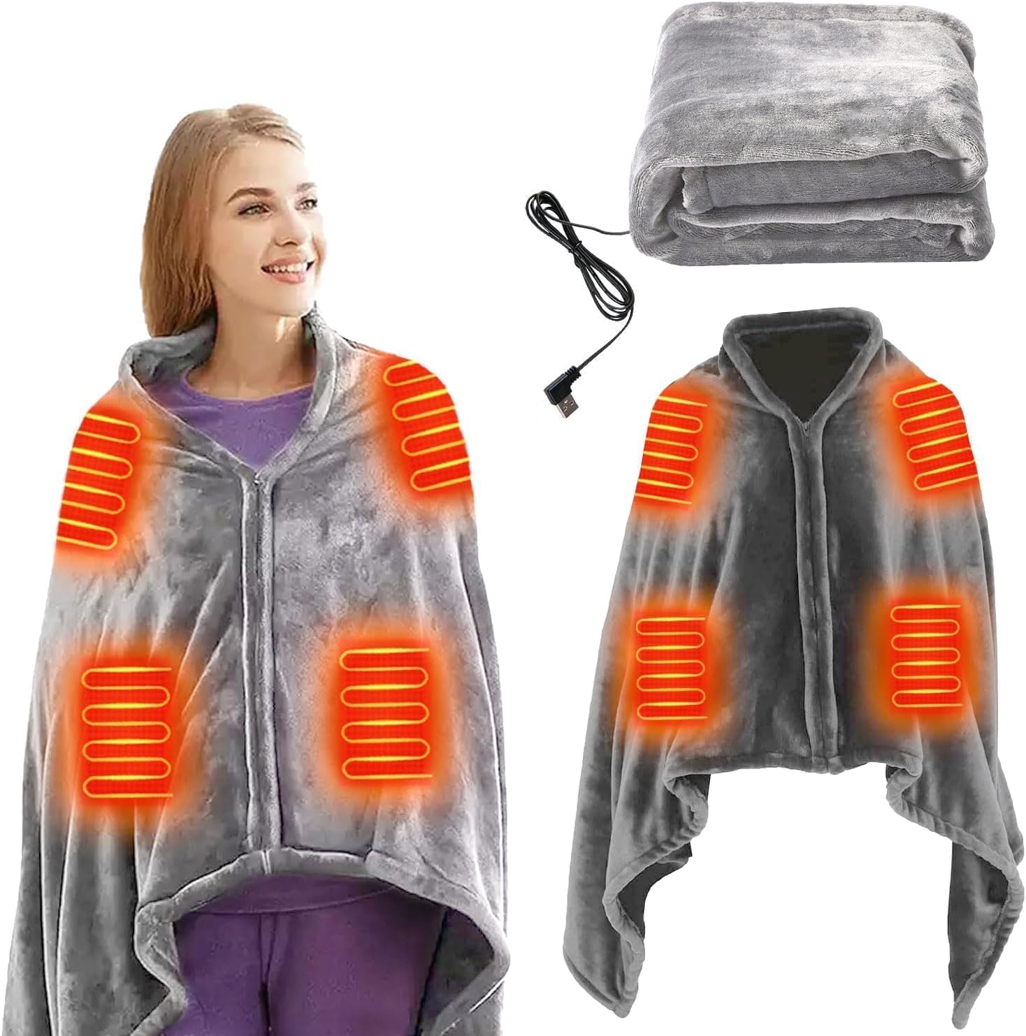 - Portable heated blank shawl: battery heat blanket thermal scarf portable heat blanket scarf uses a 5V/2A USB port power bank for heating (battery heat blanket scarf not including battery bank). The zipper pocket of the USB electric blanket scarf can be plugged into a mobile power supply, making it easy to carry and use at any time. A wireless electric blanket scarf provides extra warmth in the winter months.