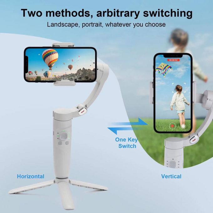 Feature:1.Three axis gimbal stabilizer;2.Easy to take with foldable;3.Support IOS and Android application, it has more shooting method;4.Using gyroscope and the latest three-axis anti-shake algorithm;5.The handle feels comfortable,the button is quick and easy to use;6.Intelligent tracking, support face and self-selected target tracking;7.Freely switch front and rear cameras, with beauty function;8.Rocker free operation, can be up and down left and right with the needs of the shooting angle, convenient shooting ;9.with cool + warm color LED light, can adjust the fill light brightness;10.Can be used with 1/ 4 nut joint tripod or extension rod.